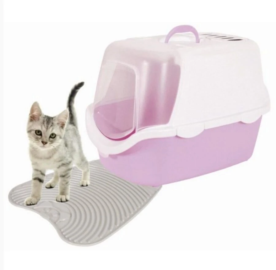 Grâce au tapis Hygiénique pour maison de toilette gris, les pattes de votre chat seront débarassée efficacement de ces malins grains de litière.